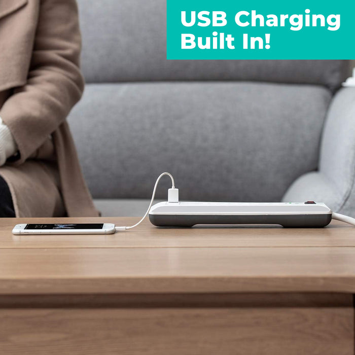 • 6-in-1 Power: Get multiple plugs in one outlet using this white power strip with USB ports. Offers 4 AC outlets and 2 USB-A ports -- perfect for home, office, or entertainment setups.